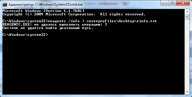 в cmd пишет REAGENTC.EXE не удалось выполнить:3, ниже скрин