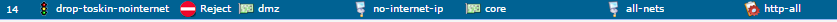 2. У Вас "товарищ, которому интернет отключаем" сидит в зоне dmz (т.е. в dmz порт воткнут коммутатор/wi-fi AP к которому прицеплено устройство которому будем блокировать)?