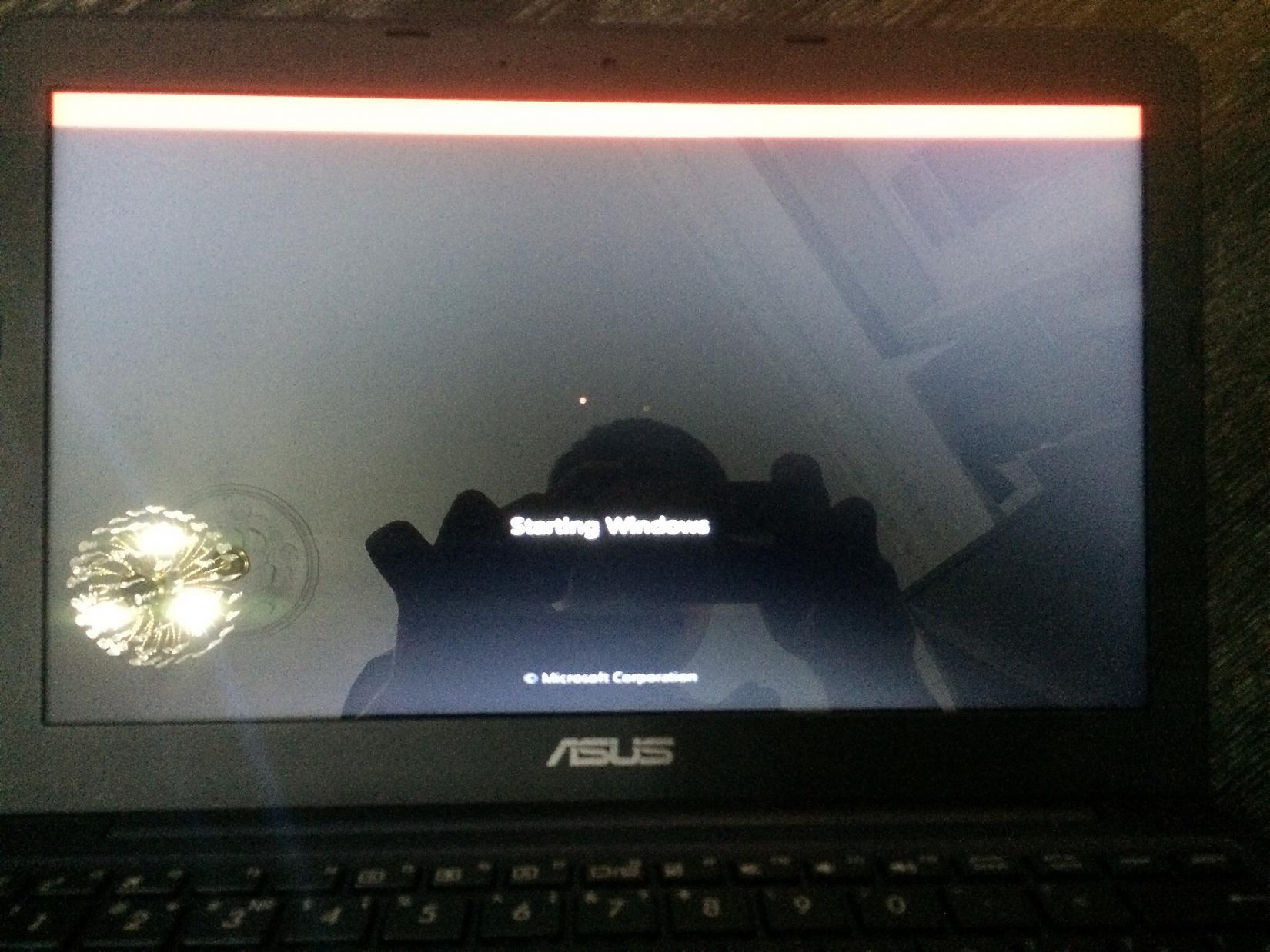 Столкнулся со следующей проблемой. После начала загрузки с флешки, на которой содержатся файлы, необходимые для установки Win7, сначала, как обычно, на черном экране внизу бежит строка Windows is loading files. После чего начинает появляться логотип Windows, и вот на этом моменте все зависает, сверху появляется неровная красная полоса. Сталкиваюсь с подобным впервые. Фото момента зависания прилагаю. Пробовал на другом ноутбуке - все проходит в штатном режиме, пробовал заливать другой образ - так же, на другом ноуте ок, на этом - красная полоса. |