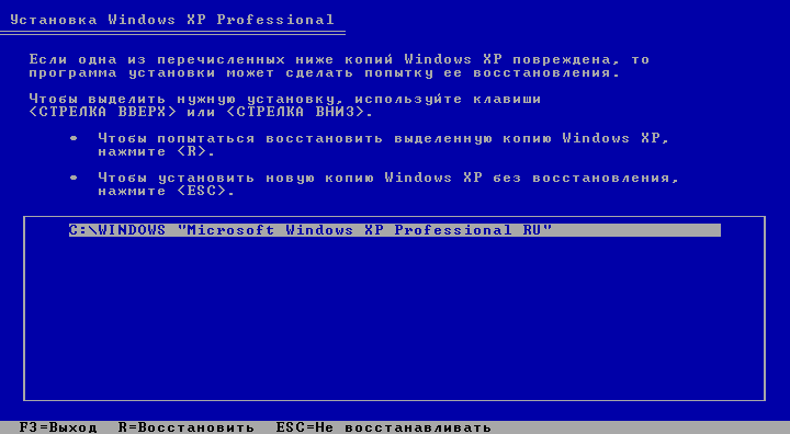 http://com-p.ru/pereustanovka-window...osstanovleniya Обратите внимание: 1. Важно чтобы диск был с версией Windows XP той, которую Вы восстанавливаете 2. После запуска установки будет проверен диск С и загружены установочные файлы. Здесь нажимаем Enter (а не R!) 3. Тут нажимаем клавишу F8 4. Здесь для восстановления старой копии Windows XP нужно нажать клавишу R |