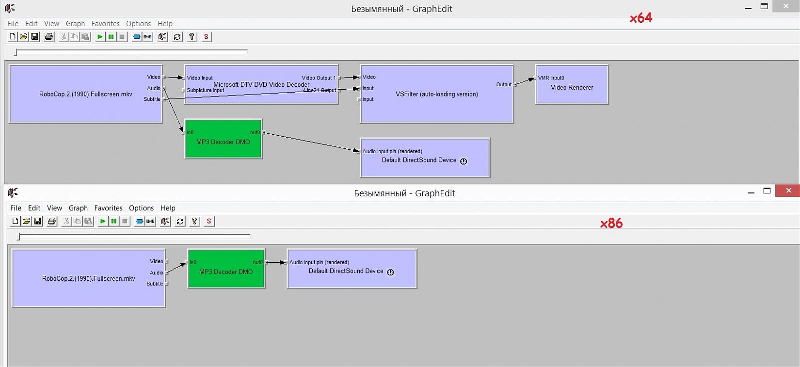 И вообще на windows 8.1 mpc-hc x86 не хочет воспроизводить видео, даже встроенными своими декодерами. Устанавливаю windows 7, делаю всё то же самое, всё воспроизводится, но на восьмёрке ни в какую. mpc-hc x86 должен же без всяких сторонних фильтров воспроизводить любое видео? Но он ругается при попытке воспроизведения любого видео что в системе не установлен нужный фильтр. При этом mpc-hc x64 работает нормально. Но мне нужно чтобы работал mpc-hc x86, а уже в нём потом мне нужно будет запустить ffdshow. |