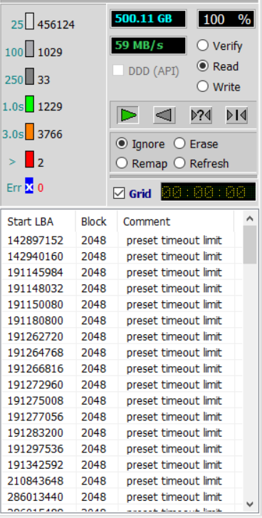 сканирование Викторией показало, что бэдов выявлено не было вообще. Зато было довольно много блоков 't'. Есть ли смысл при таком результате прогонять теперь remap или erase? эти блоки 't' тоже ремапятся? Или их можно как-то пометить, чтобы они не использовались? С остальными вроде порядок же. |