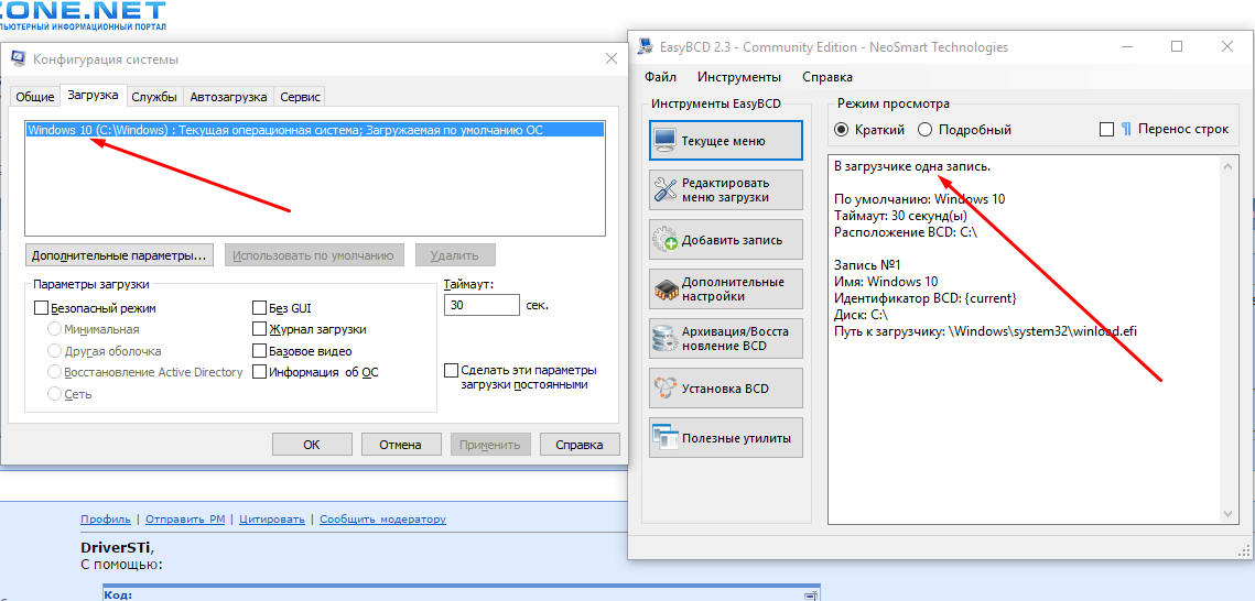 Профиль | Отправить PM | Цитировать Я, должно быть, криво объяснил. На картинках видно, что отображают msconfig и EasyBCD, а что я вижу в boot menu (F12). Пункты а прямоугольнике 1 я хочу удалить, так как этих ОС уже давно нет, я полностью форматнул диск. То, что в прямоугольнике 2 мне вообще не надо, и я был бы рад это так же удалить.