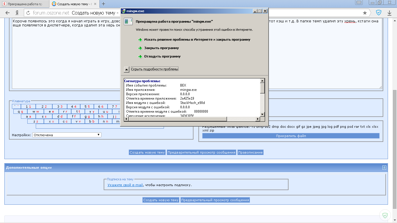 | Компьютерный форум OSzone.net » Клиентские ОС Microsoft » Microsoft Windows 7 » Разное - Прекращена работа программы "mingw.exe" всевремя |