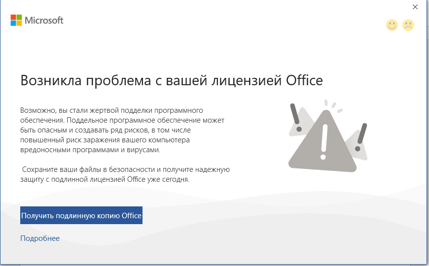 Возникла проблема с office 2019(не лиц.), после активации системой kms, перед каждым открытием word 2019, excel 2019, power point 2019. всплывает окно "возникла проблема с вашей лицензией office" как его убрать и где именно? через реестр!? чтобы оно дальше не всплывало!
