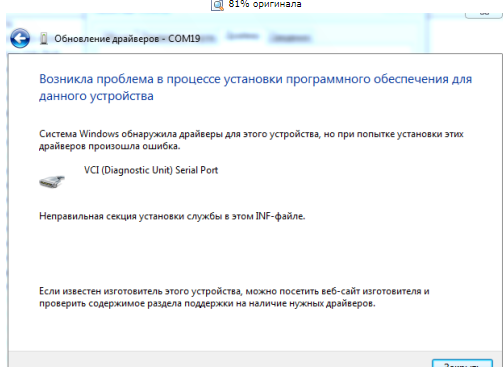 Установка - ОС 7.32 ошибка в Неправильная секция установки службы в этом inf...