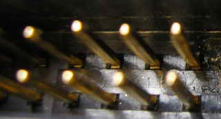 Сами ножки после отпаивания лучше вытаскиваются внутрь - в сторону контроллера, наружу вытащить не всегда получится, на них может быть расширение не дающее вытянутся слишком далеко, плюс между корпусом разъема и контроллером обычно ножка изогнута. Приклееных ножек еще не видел. При пайке желательно плату долго не греть, плата многослойная может повредиться, и от перегрева может отслоиться контактная площадка - тоже неприятно. Паять можно и без иголки, если руки правильно заточены, то можно паять и обычным 40 ваттным паяльником, с хорошим жалом. Только канифоли не нужно жалеть. Когда отпаиваешь просто аккуратно нагреваешь в течении 1-2 секунд нагретым паяльником с канифолью и тонкой отверточкой (либо иголкой ) приподнимаешь отпаиваемую ножку над контактной площадкой. При припаивании предварительно убираешь паяльником с канифолью излишки олова с контактной площадки, облуживаешь саму ножку в месте пайки. Затем устанавливаешь ее на место, прижимаешь отверточкой к контактной площадке и 1-2 секунды греешь паяльником, опять же с канифолью. Припоя много накладывать не нужно. Место пайки хорошо промыть спиртом, чтоб убрать остатки канифоли. |