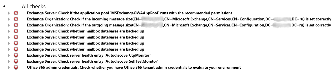 Помогите, пожалуйста, решить следующую проблему: В организации установлены одновременно Exchange 2007 и 2013 версий, поддерживающих coexistence. Раньше был установлен 2003. Сейчас 2007 боевой, и хотят перейти на 2013, но проблема заключается в том, что если перенести ящик на 2013, то Outlook на клиентской машине при первичной настройке доменного пользователя выдаёт ошибку "Не удается завершить действие" (см. outlook-error1.png), и в графе "почтовый ящик" адрес выглядит так: =SMTP:user@domain.ru (см outlook-error2.png). BPA на сервере Exchange 2013 - см. BPA3.png. Причём, в качестве admin credentials он почему-то не принимает учётку, имеющую права админа домена и админа Exchange. MSExchangeOWAAppPool запущен от LocalSystem, как это и рекомендовано. Готов дать дальнейшую информацию. Заранее спасибо! |