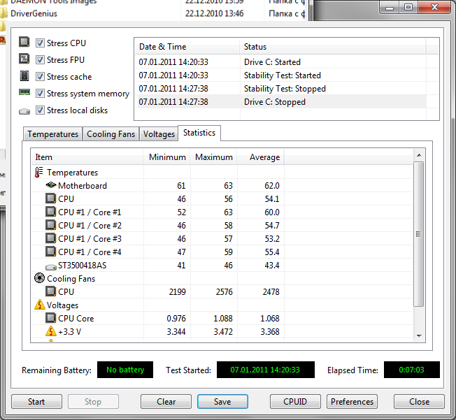 Intel Core 2 Quad Q8200 PCI-E 512MB Sapphire Radeon HD 4850 DIMM DDR-2 1Gb Samsung PC 6400x2 Seagate Barracuda 7200.12ST3500418AS Б.П ATX 500W Gembird CCC-PSU6 Кулер Thermaltake TMG i1 CL-P0370 Корпус Navicom Arctic (120 mm-фронт,230mm-бок) Windows 7 Собран в октябре 2009 Проблема:Перезагрузка под нагрузкой(S.T.A.L.K.E.R) Симптомы:В июне ,в процессе игры произошел вылет с перезагрузкой.Проверил температуру камня Эверестом- у первого-58 у остальных-45-47.Сбегал купил новый кулер(см. конфигурацию)Через некоторое время вылеты продолжились.После размышлений (температура не всегда была такой большой) решил что это связано с происхождением игры (пиратка).Еще через какое-то время у меня стали выскакивать сообщения что у меня не доступа к файлу (код 5) при попытке удалить , или установить новое ПО.Обратился на этот Форум-мне ответили что прежде всего нужно откреститься от вирусов (я и сам к этому склонялся).У меня стоит NOD 32-4 еще проверил CureIt!Dr.Web (без результата) в процессе проверки AVZ у меня рухнул комп-осыпался винт.Сбегал купил новый винт-идентичный убитому.Вылеты продолжились.Достал Б.П-выглядит идеально-конденсаторы не вздулись да и вообще- некуда плюнуть. Склоняюсь к замене Б.П но как-то 1,5 косаря отдавать ради научных исследований слегка стремаюсь.И главное-настораживает:почему греется только один проц? PS. Без нагрузки никогда не вылетал: Core 0-39 Core 1-36 Core 2-36 Core3-36 Какие будут предложения? |