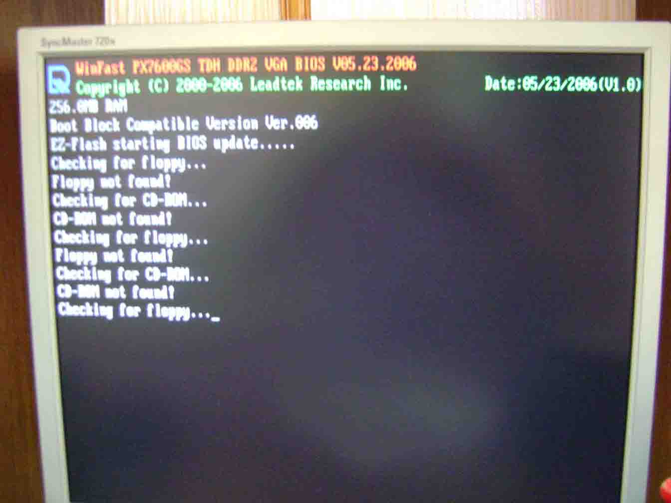 Cheking CDRom File M2N-MX.ROM not found Cheking Floppy File M2N-MX.ROM not found Cheking CDRom File M2N-MX.ROM not found Cheking Floppy File M2N-MX.ROM not found Вставил дискету появилась одна дополнительная запись, типа Reading Floppy File M2N-MX.ROM not found Я вот подумал может надо нажимать во втором окне, в этом окне кок раз показывается модель моей материнки???. И ещё меня давно удивлял тот факт, что моя модель материнки - M2N-MX, а скачанный биос (со страницы, для моей вроде бы, материнки) называется M2NX, Это нормально?? |