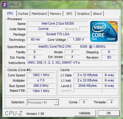 Помогите разогнать: DualCore Intel Core 2 Duo E6300, 1866 MHz (7 x 267)