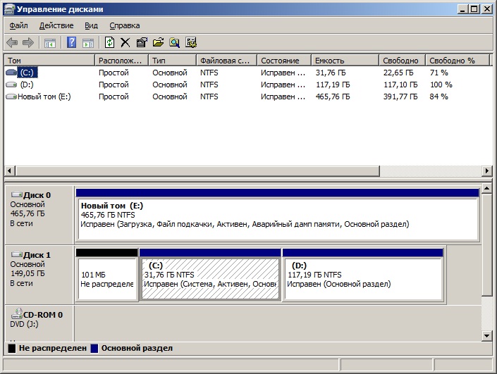 С: = старый хард со старой виндой D: = раздел старого харда E: = новый хард с новый виндой |