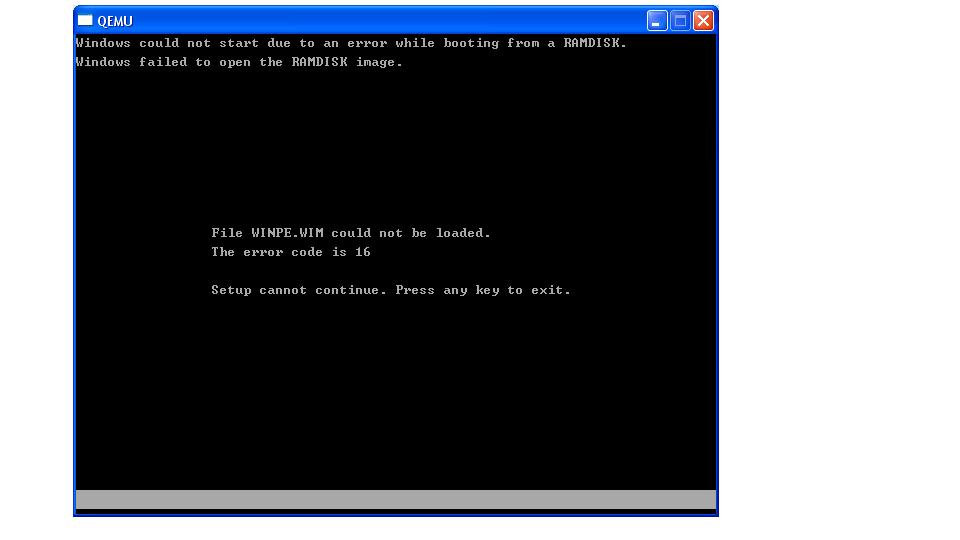 Профиль | Отправить PM | Цитировать Обноил grub, заменил пустышку в папке boot на образ скачаный по ссылке 02.12.2011г Windows XPE - Мини версия меню стандартное не трогал... призагрузке на эмуле выскакивает ошибка на скрине.... как победить?