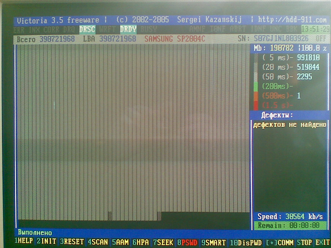Проверил как ты посоветовал под Досом: находит дефект, ремапит его (синим прямоугольником) и после повторной проверки, ровно на том же секторе этот дефект остаётся, странно |