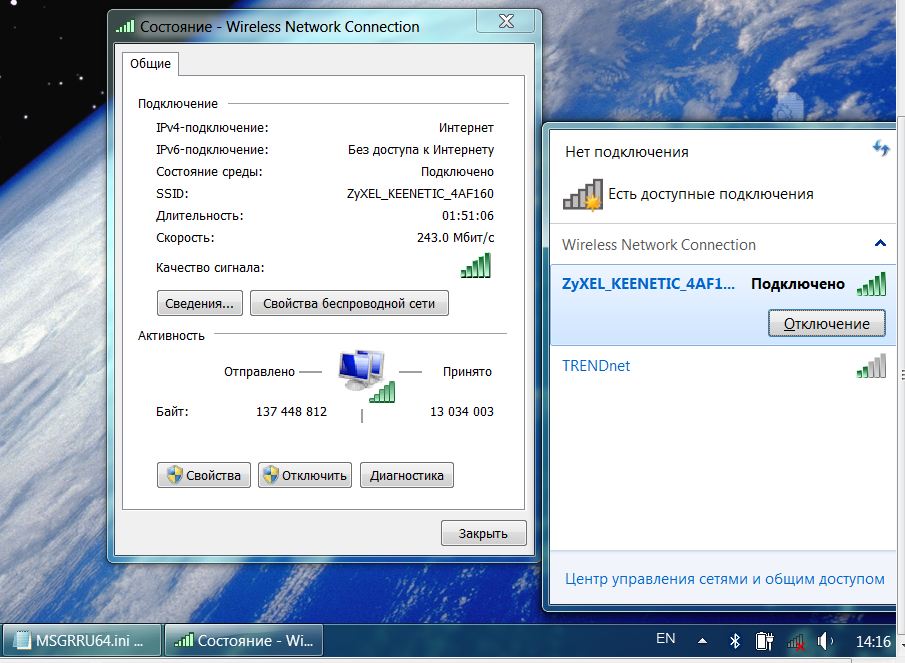 Интернет - Изменился в трее значок Wi Fi подключения и исчезла Домашняя группа, появился MSGRRU6