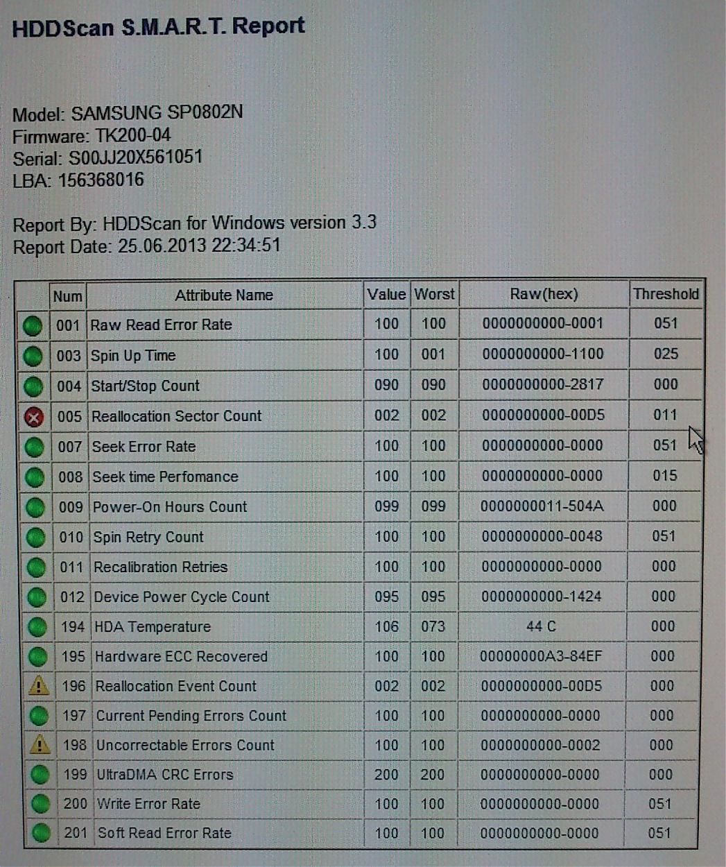 Профиль | Отправить PM | Цитировать vada25,Более 200 переназначенных секторов,диск не жилец.