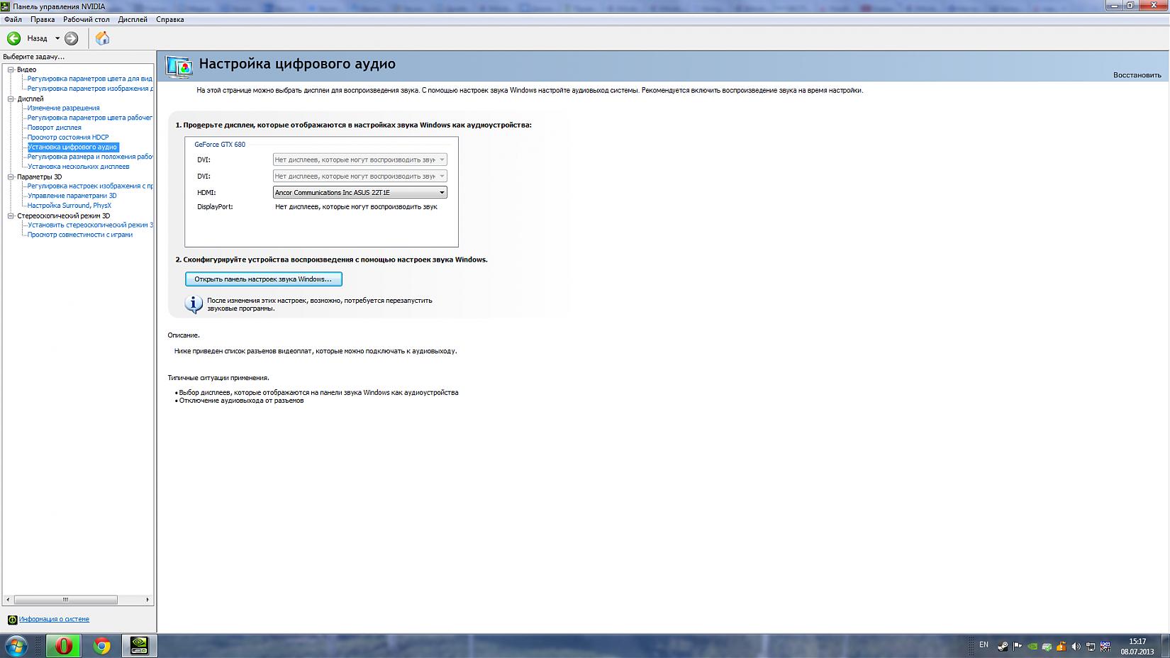Потом сделайте скриншот из панели управления Nvidia. (Дисплей=> Установка цифрового аудио). |