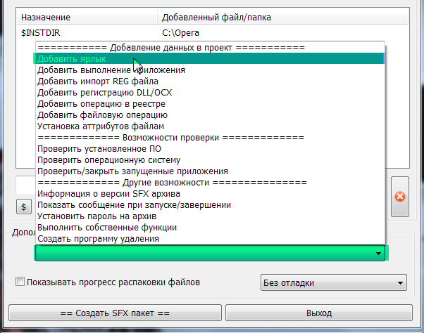 Данный функционал не нужен SFX Creator, у нас более узкий профиль необходимых возможностей для создания SFX архивов, кому нужен особый функционал - я такую возможность предоставил с помощью подключения своих функций, дальше дело за вами. »