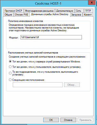 Есть два DHCP-сервера(виртуальных), (на них настроена обработка отказа для области),и физическая машина с ролью WDS В параметрах области указал опцию 66 (с указанием имени WDS-сервера) и 67 (с путем к файлу-загрузчику boot\x86\wdsnbp.com) При попытке загрузить с WDS-сервера виртуальную машину, она получает IP и обнаруживает WDS-сервер, но далее выводится ошибка, говорящая о невозможности загрузки вследствие ошибки проверки Secure boot. http://forum.oszone.net/attachment.php?attachmentid=109206&stc=1&d=1390045029 При отключении Secure boot в свойствах ВМ (виртуальная машина второго поколения), загрузка вообще не идет, виртуалка даже IP не получает. Что нужно сделать для корректной работы WDS? Заранее благодарю. |