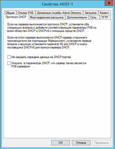 При моей конфигурации, она получает ip, загружает wdsnbp, и далее загрузка зацикливается на загрузке wdsbnp Убрал опции 66 и 67. После этого машина перестала даже ip получать. Выводит ошибку PXE-E53, что не найдет файл-загрузчик. Нашел вот здесь информацию о том, что необходимо задать dhcp-параметр Next Server. Однако в консоли управления dhcp его не вижу. Да, и еще момент. DCHP-серверы также являются контроллерами домена |