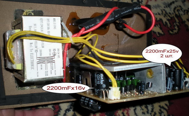 За схему и фотки спасибо! У самого такой набор, но у меня в ждущем режиме фона нет, я хотел просто как-то звук улучшить и помощнее сделать, но посмотрев схему и трансформатор, пришел к выводу что ничего там уже не улучшить без полной переделки, (замены микросхем TEA2025 на более мощные и трансформатора). |