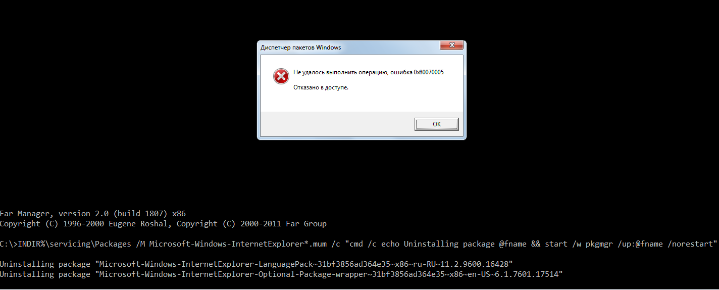 При выполнении командной строки выдает ошибку об отсутствии доступа при удалении второго пакета, установка не идет - откат после перезагрузки см.вложения |