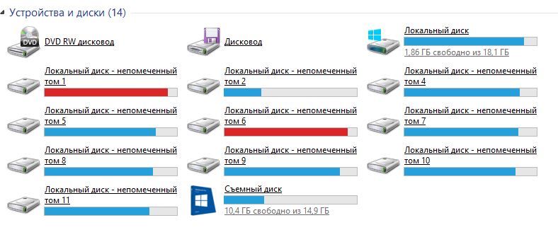 Вот снимок диспетчера дисков. Как с надписями непонятными бороться? Непомеченный том... Как пометить? |