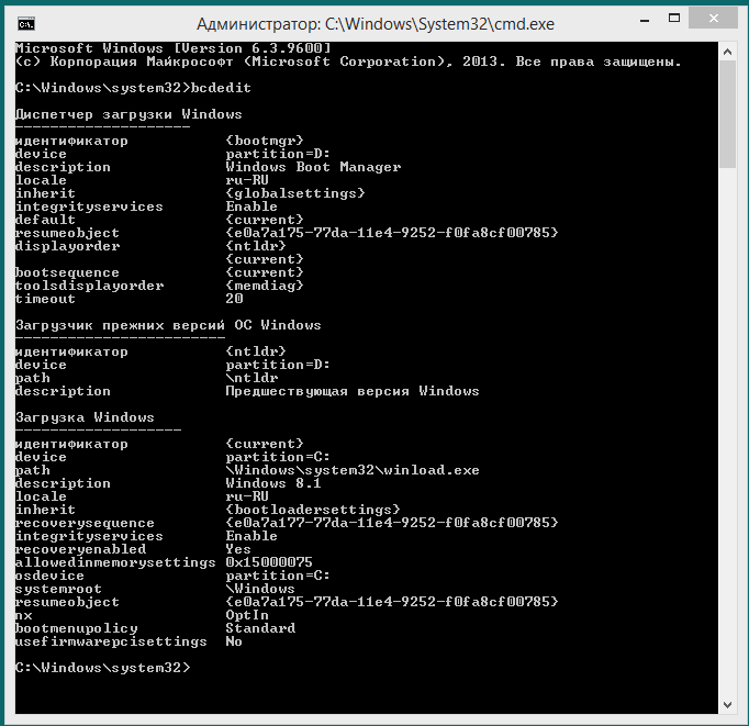 Для чистоты эксперимента обновим файлы загрузки Windows 8.1, из командной строки от им.адм.