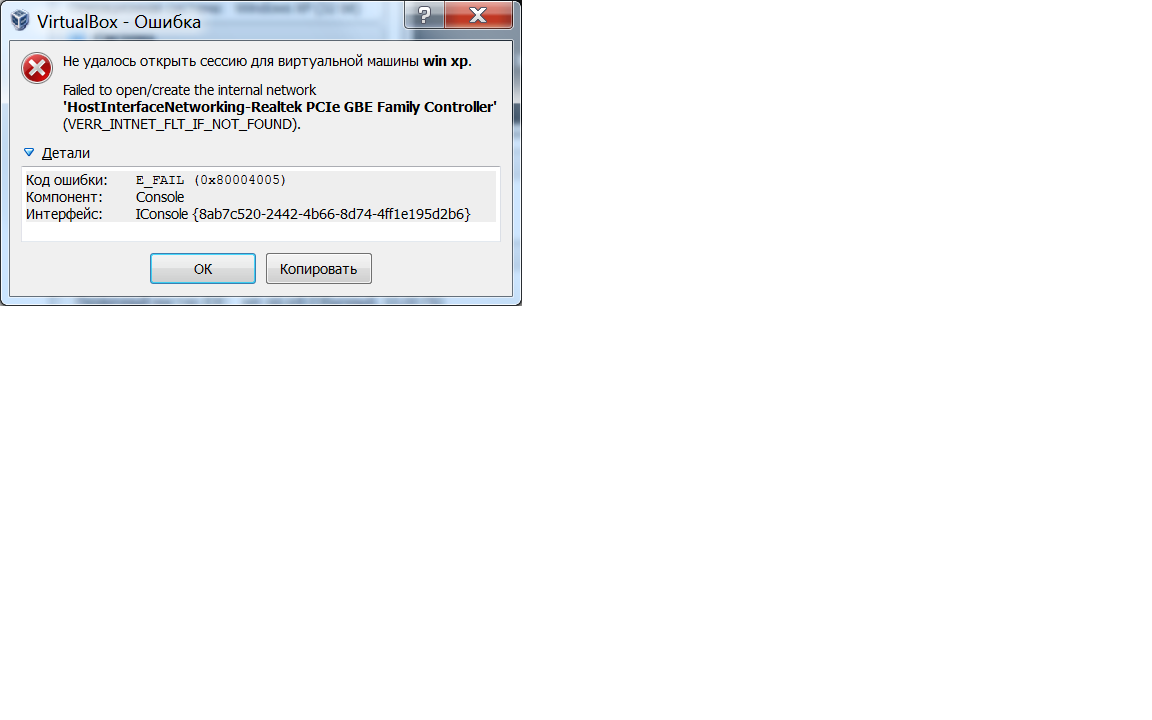 Прошу помощи. На Вин 7 установил vbox 4.3.20-96997. В vb установил гостевую win xp - все норма. На другой машине поставил с того же дистрибутива vb, перенес гостевую xp. В свойствах сети vb стоит Мост. Запускаю гостевую - вываливается с ошибкой (в приложении). Далее загрузка гостевой не идет. Если убрать Мост, то гостевая без проблем загружается. Как можно исправить это? Спасибо |