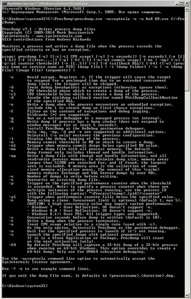 C:\ProcDump\procdump.exe -accepteula -e -w AoK_HD.exe C:\ProcDump\