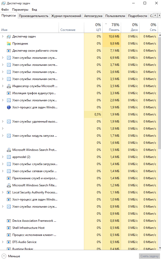 После перезагрузки ест 1.6гб, но потом начинает жрать 50%(4гб) памяти. в диспетчере устройств не показывает, что именно ест память. в чем может быть причина? помогите пожалуйста!