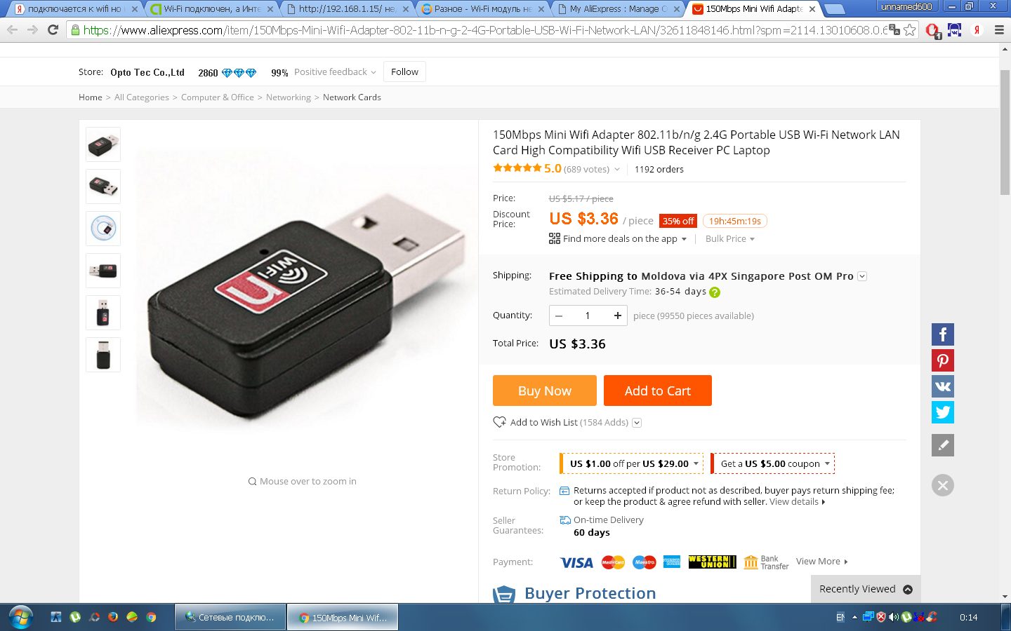 Добрый день , купил с AliExpress вай фай модуль что б установить его на стационар , пришла USB WI-FI , все как заказывал с установочным диском. Вставил юсб ви фи запустил диск установил дрова все как полагается, на диске дрова реалтековские и своя прога для включения вай фая , т.е настройка не от майкрософт а своя реалтековская . Карочь пробовал и через спец прогу и что б комп сам настроил вай фай но нефига .. сеть находит подключается и сбрасывается сразу и так до бесконечности .. Прописывал айпи не помогает .. ща вообще в трее шарик бегает ищет сеть .