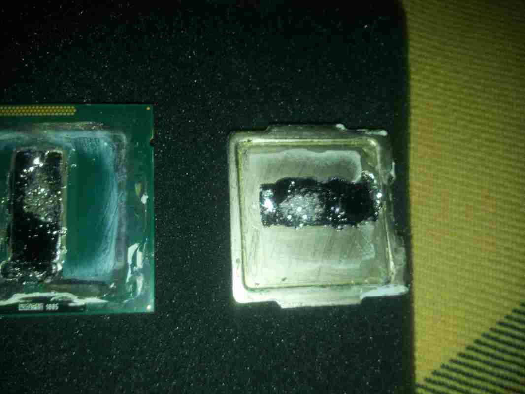 Между ЯдромЦП и крышкой: на мое удивление, осталось 60-70% старого ЖМ ("Фото-снял"), крышка по-прежнему была приклеена-держалась на 4+ летнем клее-моменте-секунда, подковырнув лезвием - отошла.