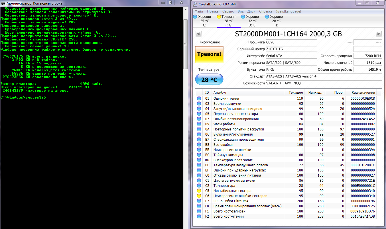 Вот смарт после форматирования. Это я диск G: форматнул (вторую половину). Наверное и первую надо заодно сделать.