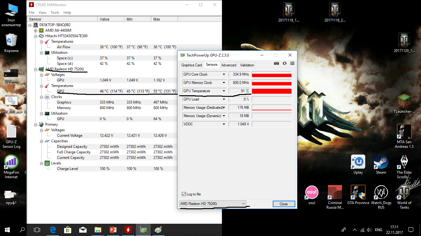 Ссылаются на то, мой ноут перегревается. Самое непонятное, что в GPUZ показывает под 100(бывает выше) HW monitor и aida показывают 48-60 в простое. Проги шалят или датчик? http://forum.oszone.net/attachment.p...1&d=1511449797 http://forum.oszone.net/attachment.p...1&d=1511449797 |