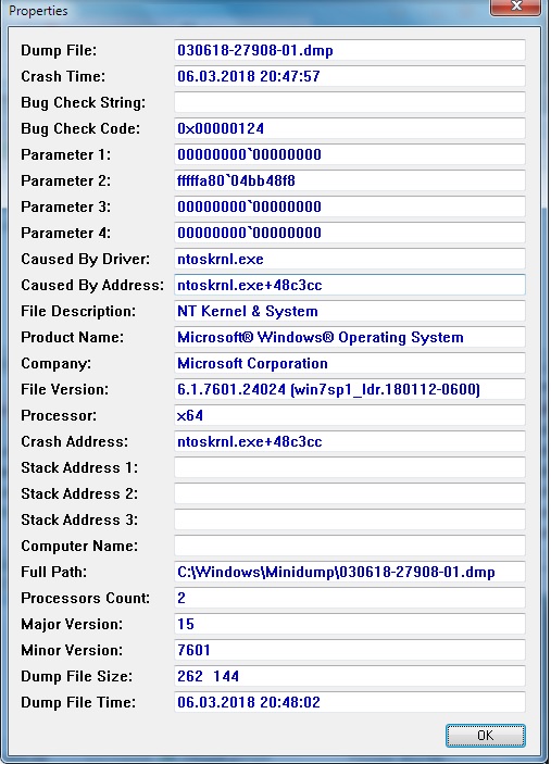 Компьютерный форум OSzone.net » Сфера Microsoft » Устранение критических ошибок Windows » BSOD - 0x00000124: WHEA_UNCORRECTABLE_ERROR