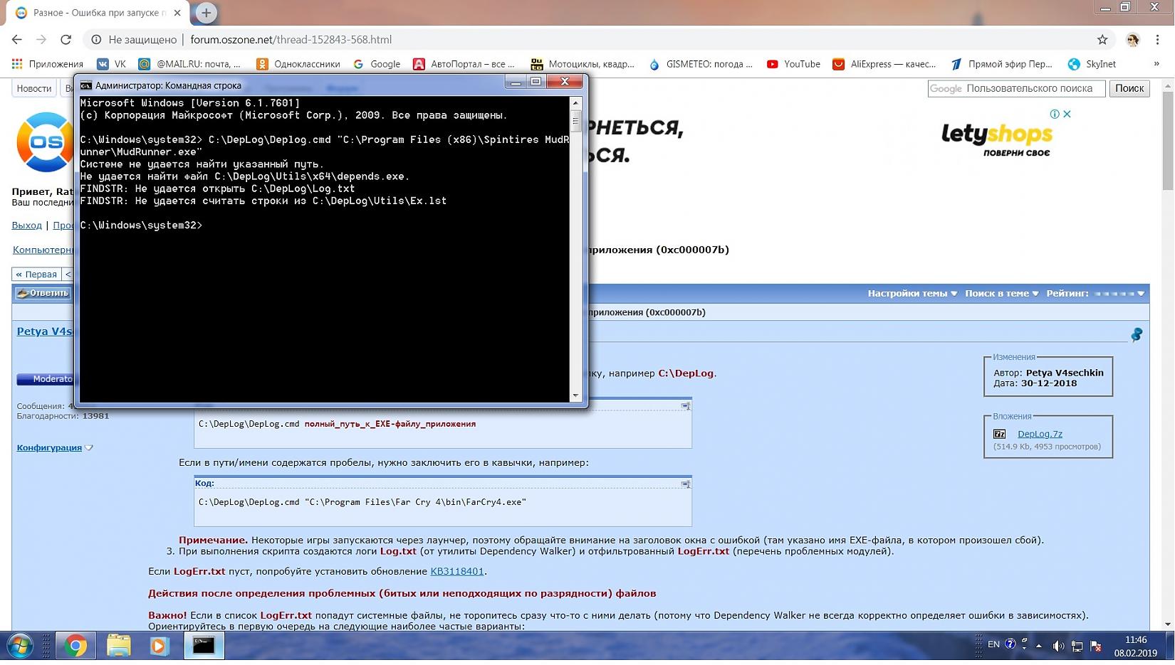 Разное - [решено] Ошибка при запуске приложения (0xc000007b)