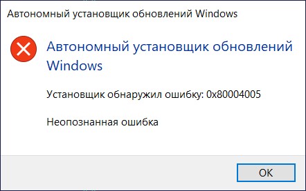 Во время установки выскакивает ошибка 0x80004005 (Неизвестная ошибка).