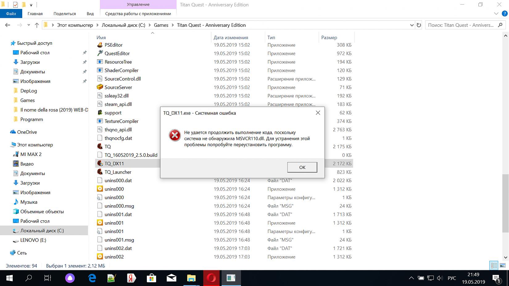 Доброго времени суток. Выручайте, пытаюсь запустить Titan Quest - Anniversary Edition, переустановил Visual C++ Redistributable for Visual Studio 2012 версии x64 и x86, но ошибка та же. Спасибо.