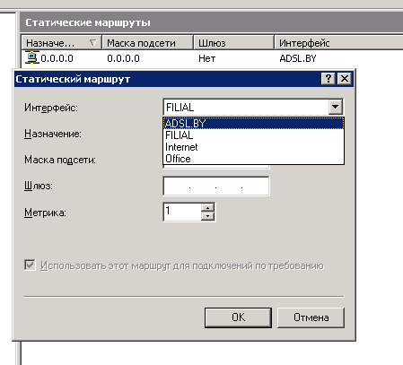 Подскажите пожалуйста как правильно прописать маршрут к сети филиала, подключенной к офису по входящему VPN? Выход офиса в интернет (исходящий VPN к провайдеру) и связь с филиалами обеспечивает RRAS маршрутизатор на Win2003 SP2. Основная сеть офиса 10.0.0.0/24. Сеть филиала (192.168.88.0/24) имеет свой отдельный выход в интернет, VPN клиент поднят на Zyxel keenetic + маршрут на сеть 10.0.0.0/24. Все отлично, филиал "видит" сеть офиса. Очевидно, чтобы компьютеры офиса "видели" сеть филиала, на сервере нужно прописать маршрут через VPN туннель, но первая трудность в том, что в интерфейсе добавления маршрута нет внутреннего интерфейса. http://forum.oszone.net/attachment.p...1&d=1515521428 Через route add тоже не работает: маршрут вроде добавляется, но в таблице маршрутов не появляется. Как правильно, подскажите? |