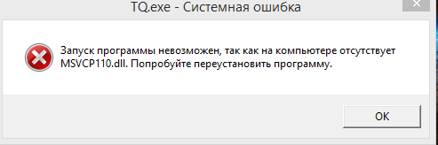 Если MSVCP110.dll после этого не появится, можете скопировать из архива vcredist_2012_files.7z. |