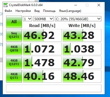 Добрый день. недавно приобрели первый сервер hp d360 gen8, контроллер p410i, кэш с батарейкой на 1 гиг. модель к сожалению не помню. SSD-накопитель Samsung 860 EVO [MZ-76E500BW] 2 штуки. на первое время воткнул один из любопытства и накатил вин сервер 2019. Там решил проверить скорость диска и тут вот вопрос. что может быть не так судя по скорости? тест показывает крайне низкие значения, но копирование базы вроде бы не так как показывает тест. замер производился до и после выставления "Physical drive write cache state -> Enabled" результаты не изменились. Подскажите куда копать и есть ли смысл копать (всмысле может просто другой прогой лучше тестить)?