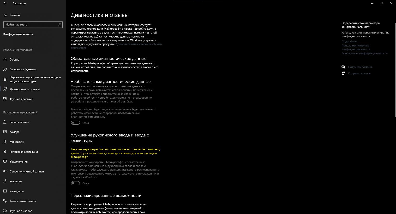 Vadikan, был один параметр. После ввода команд стало два. Вводил я со значением 3. Я думал, это разблокирует изменение конфиденциальности вручную, как должно быть. Через реестр оно меняется успешно.