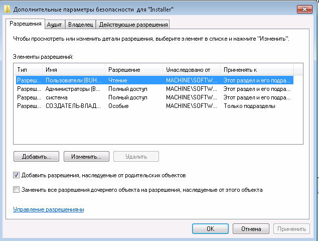 Было сделано: 1. Была проведена проверка диска – ошибок нет. 2. Установка Viber была запущена с правами администратора. Результат тот же. 3. Откатил систему на точку восстановил, которая была создана за неделю до появления этой проблемы – не помогло 4. Попытка установить Windows Installer CleanUp – для удаления остатков Viber-a завершается такой же ошибкой, что и установка Viber-a. 5. Отключение антивируса NOD тоже ничего не дало. 6. Полные права на папку реестра InProgress так-же не облегчили участь Vibera. Кстати, папка InProgress была только на компе где не хотел устанавливаться Viber, на других она отсутствует. 7. Удалил паку InProgress, но при попытке установки Viber-a, она снова появилась. Установка закончилась всё тойже ошибкой. 8. Заглянул в журнал событий: Имя журнала: Application Источник: MsiInstaller Код события: 11406 Уровень: Ошибка Описание: Product: Viber -- Error 1406. Could not write value to key Software\Microsoft\Windows\CurrentVersion\Installer\InProgress. System error 5. Verify that you have sufficient access to that key, or contact your support personnel. 9. Сравнил ветку реестра Windows Installer HKEY_LOCAL_MACHINE\SYSTEM\CurrentControlSet\services\msiserver с аналогичной на другой машине – отличий нет. 10. Перед установкой запустил Process Monitor и снял лог фалы при установке Viber-a(см. вложенные файлы https://yadi.sk/d/aBKjbqsC_NKzQw - сразу при возникновении проблемы - после удаления папки реестра InProgress - после установки полных прав на папку реестра InProgress Понятно, что спасет кардинальный вариант с переустановкой всей системы, но т.к. на этом компьютере стоит много софта, настроек, ,… хотелось бы победить эту проблему «меньшей кровью» Есть еще образы системного диска (создаются автоматически), но так как проблема произошла достаточно давно, при их восстановлении придется разбираться какой софт и настройки были обновлены с момента их создания. Помогите, пожалуйста советом, куда «копать», что-бы победить эту проблему. |