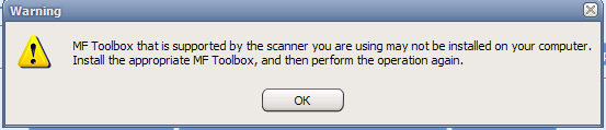 Всем привет! Такая проблема. При попытке сканировать непосредственно с устройства на комп (на устройстве нажимаем scan->компьютер->адресат(имя компа отображает правильно) MF Toolbox выдает такое окошко. Если устройство переключить в режим сканер онлайн, то с компа все работает. Интересует именно прямое сканирование.
