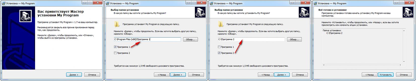AppName=My Program AppVerName=My Program v 1.7 DefaultDirName={pf}\Программа 1 OutputDir=. Всё с вашего кода. |