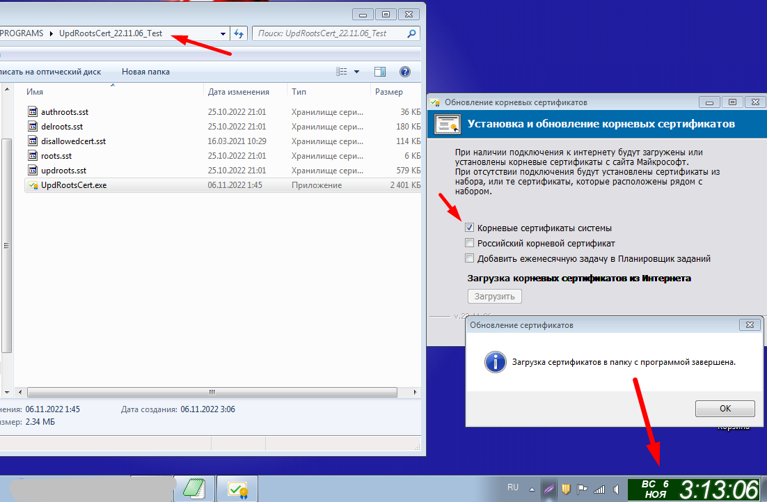 Проверил UpdRootsCert_22.11.06_Test, у меня ничего не изменилось.