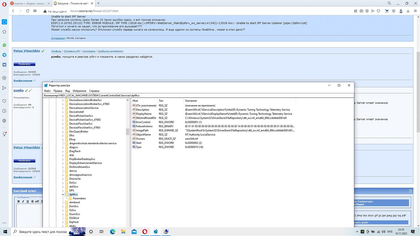 Профиль | Отправить PM | Цитировать Компьютер\HKEY_LOCAL_MACHINE\SOFTWARE\Microsoft\Windows NT\CurrentVersion\WUDF\Services\ipfumdf\Parameters тут строковой параметр Server имеет значение pipe://ipfsrv.dptf