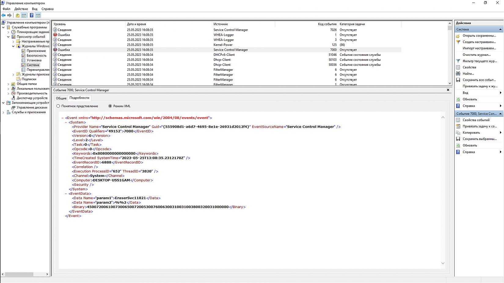 EventID - Ошибка EraserSvc11821 сменил проц/мать