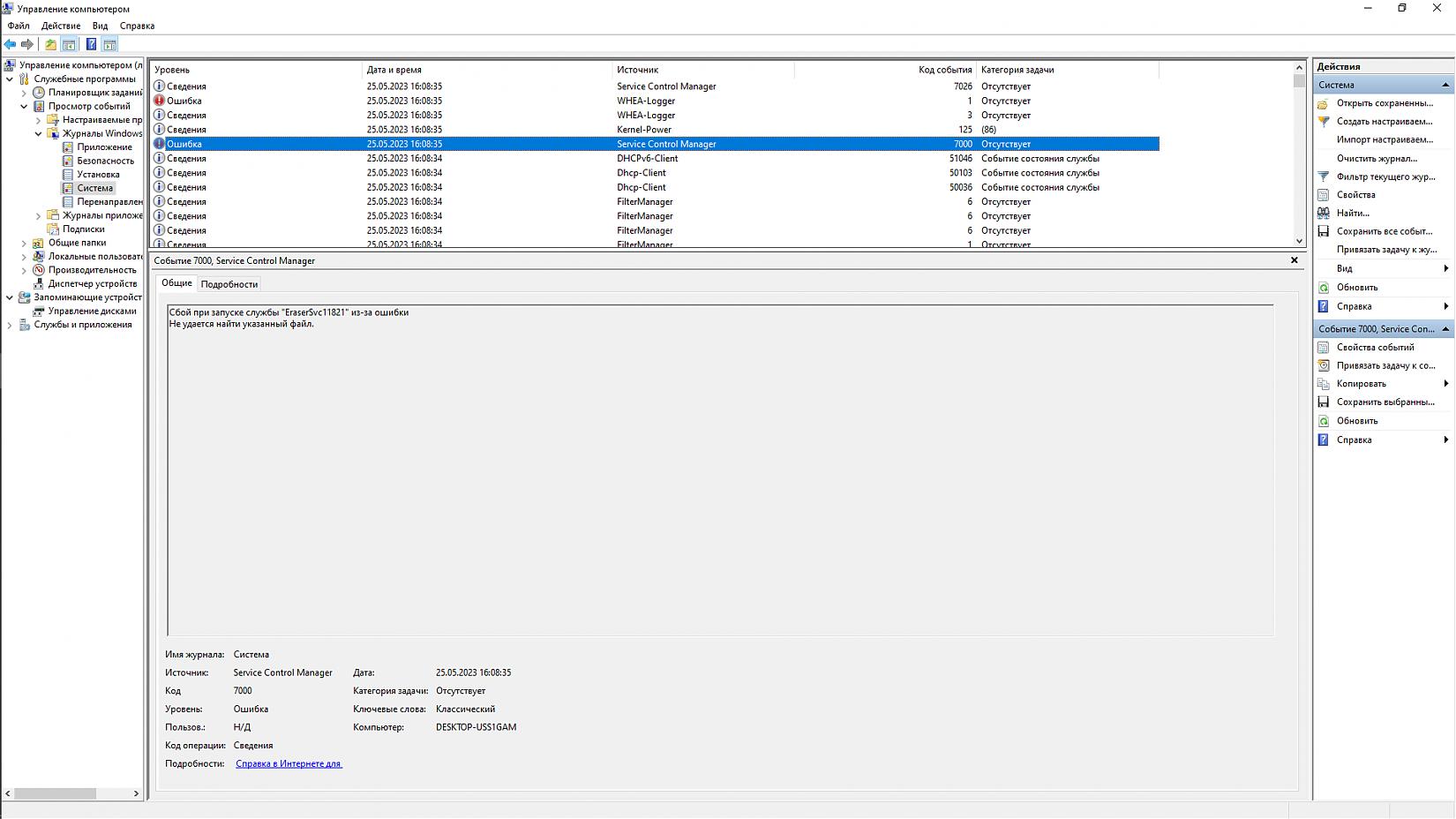 EventID - Ошибка EraserSvc11821 сменил проц/мать